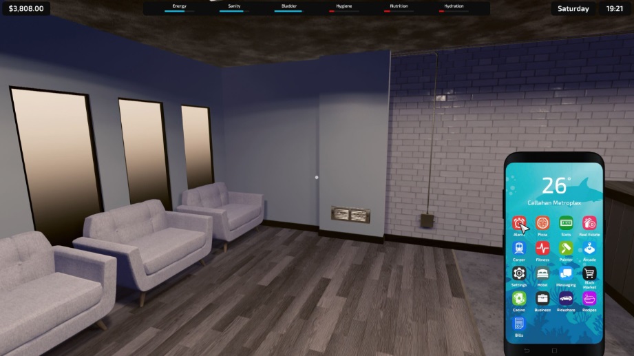 La gestión del apartamento aporta un componente adicional. El jugador puede mejorar su vivienda progresivamente. Estas mejoras no son solo estéticas. También influyen en el bienestar general.